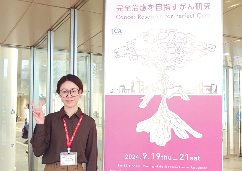 母国の中国から日本へ留学し、大学院では、がんの研究に取り組んでいます。父の知人が、がんを患い、がんという病気を「身近なこと」として考え始めました。「がんに苦しむ人々の力になれるよう、がんについて学ぼう」と心に決め、今は大谷清先生の『発がん分子機構学研究室』に所属。自らの研究成果を、論文や学会での発表を通して、積極的に広く世界へと伝えています。今後さらに研究を進めて、将来的には、中国の研究室と連携し、若手研究者に貢献したいです。今回、私自身のこれまでの成果を仁田記念賞と山田晴河記念賞という形で認めていただけたことを、たいへん誇りに感じています。